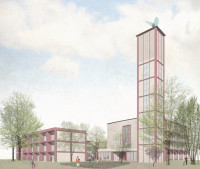 Beim Wettbewerb zur Nachfolgenutzung der Pauluskirche in Essen-Gerschede konnten wir einen 3. Preis erlangen. Geplant werden sollte die Errichtung von Wohnungen und sozialen Einrichtungen. Die Frage, ob dabei das Kirchengebäude erhalten werden könnte, beantworteten wir mit einem differenzierten Umbaukonzept.