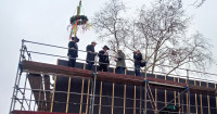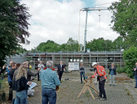 Der Erweiterungsbau des Kulturzentrums August Everding in Bottrop nimmt Formen an. Mit tatkräftiger Unterstützung von Oberbürgermeister Bernd Tischler wurde der Richtkranz aufgestellt. Die Eröffnung ist für den nächsten Sommer geplant.
