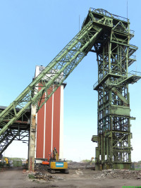Denkmalgerechte Sanierung des Fördergerüstes Schacht 2 auf dem Gelände der Landesgartenschau 2020 in Kamp-Lintfort.