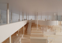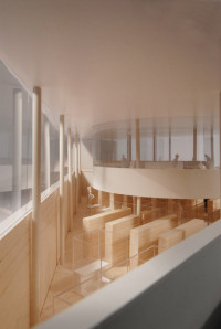 Das neue Haus ergänzt das bestehende Ensemble um ein städtebauliches Element, das die Anlage des Abteihofes komplettiert und gleichzeitig die abseitige Lage der ehemaligen Nebengebäude aufbricht. Die Architektur des neuen Hauses ergänzt das bestehende Ensemble um einen neuen Bautyp, der sich durch seine Höhe und Ausdehnung deutlich den bestehenden Bauten unterordnet. Gleichzeitig nutzt er die Chance, der Aufgabe der Hochschule als Ort der Kommunikation und der Lehre ein bauliches Abbild zu geben, indem er durch seine Transparenz innen und außen miteinander verbindet.
