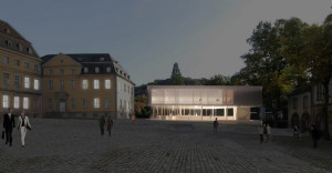 Die wesentlichen stadträumlichen Aufgaben des Neubaus sind zum einen die Schaffung eines Abschlusses der barocken Hofanlage, zum anderen die Ausbildung eines Gelenkes zwischen dem Hof und den quasi rückwärtig gelegenen, aber für die Funktionen der Hochschule zentralen Nebengebäuden.