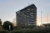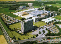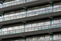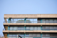 Das Verwaltungsgebäude des biocampus cologne stammt aus den 1960er Jahren. Im Zuge der erforderlich gewordenen Sanierung der charakteritischen Waschbetonbrüstungen wurden wir zu einer Gestaltungsberatung hinzugezogen. Ein Erhalt der Waschbetonoberfläche war technisch nicht sinnvoll möglich, stattdessen wurde eine neue Sanierungsschicht aufgebracht. In Anbetracht der bereits früher (nicht durch uns) erfolgten Sanierung der Glasfassade mit ihren stark farbigen Füllungen schlugen wir für diese neue Beschichtung der Brüstungen eine zurückhaltende, anthrazitgraue Farbgebung vor, die der Eleganz der klassischen Modernität des Hauses zu neuer Geltung verhilft.