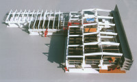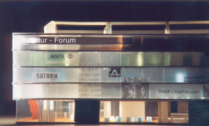Die gigantischen Volumen des stillgelegten Elektrostahlwerkes in unmittelbarer Nachbarschaft der Neuen Mitte Oberhausen sollten wie ein Dinosaurier von der industriellen Vergangenheit des Ortes zeugen. Die Idee einer Nutzung zu Austellungszwecken wurde von uns im Rahmen einer Studie untersucht. Um die Spuren der brachialen Gewalt der Schrottschmelze nicht zu verwischen schlugen wir vor, lediglich variable Raumvolumen auf die für enorme Lasten ausgelegten Kranbahnen aufzulegen.