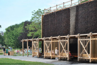 Im Rahmen der durch die Planergruppe Oberhausen zum Kurpark umgestalteten Wallanlagen der historischen Stadt Xanten planten wir ein Gradierwerk. Über aufgeschichtetes Schwarzdornreisig rieselt dabei Salzwasser, der entstehende Wassernebel reinigt die Atemwege. Als Vorbild dienten uns die Gradierwerksanlagen in Bad Kreuznach, die ursprünglich zur Salzgewinnung entstanden. Der Entwurf greift die funktionalen Bedingungen für eine optimale Wasserzirkulation auf und ergänzt sie um Elemente wie eine umlaufende Pergola und Sitzbänke, die dem Wohlbefinden des Parkbesuchers dienen.