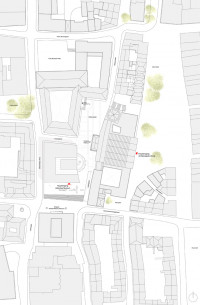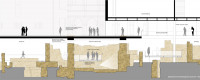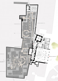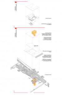 Das Jüdische Museum wird auf der Dachplatte des bereits im Rahmen der Archäologischen Zone gebauten Schutzbaus über den jüdischen Ausgrabungsbereichen errichtet.