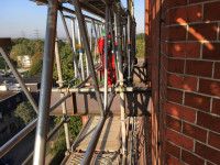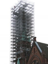 Der Turm der Alten Kirche der evangelischen Kirchengemeinde Altenessen-Karnap wird saniert. Da der Turm nicht freisteht sondern dreiseitig von dem Kirchengebäude angebaut ist, wurde die Einrüstung über eine Stahlkonstruktion auf Höhe des Glockenstuhls abgefangen. Die Arbeiten umfassen Sanierungsarbeiten an der Dacheindeckung aus Kupfer und ergänzend am Mauerwerk. Die Fertigstellung erfolgt bis Ende des Jahres 2019.