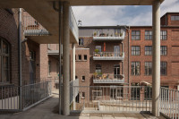 Teil dieser Entwicklung ist der Umbau der beiden denkmalgeschützten ehemaligen Produktionsgebäude Lewerentzstr. 106 und Tannenstr. 79 zu Wohnungen. Die vorhandenen Eingänge auf der Straßenseite und die vertikale Erschließung über zwei Treppenhäuser blieben erhalten und werden zur Sicherstellung der Barrierefreiheit um Zugänge auf der Hofseite, sowie um zwei Aufzüge innerhalb der Gebäude ergänzt.