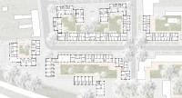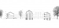 Daher schlagen wir vor, den Sanierungsumfang auf den historischen Kern der Siedlung zu reduzieren und alle späteren Ergänzungsbauten abzubrechen. Somit entstehen neue Baufelder, auf denen mit Neubauten eine behutsame Nachverdichtung erzeugt wird. Der Erhalt der historischen Bauten ist die Basis für die qualitätsvolle Weiterentwicklung der Siedlung. Sie prägen weiterhin das Siedlungsbild und verankern sie in der öffentlichen Wahrnehmung als Teil der hohen Siedlungskultur der 1920er Jahre.