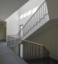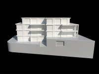Das von uns entworfene Gebäude bietet großzügige, hochwertige Wohnungen bei optimaler Ausnutzung des Grundstücks an. Dazu werden pro Geschoss je zwei Wohneinheiten über ein mittig positioniertes Treppenhaus mit Aufzug erschlossen. Die so angelegten zwei Gebäudehälften sind versetzt angeordnet, und folgen so dem Verlauf des Grundstücks und der Hanglage. Die straßenseitig angeordneten großzügigen Terrassen verfeinern die Gliederung des Gesamtbaukörpers in vier Elemente und fügen ihn so in die Maßstäblichkeit der umgebenden Bebauung ein. Alle Wohnungen orientieren sich zur Talseite und nutzen damit die besondere Qualität der Aussicht auf die Ruhrhöhen. Das Projekt befindet sich derzeit im Bau.